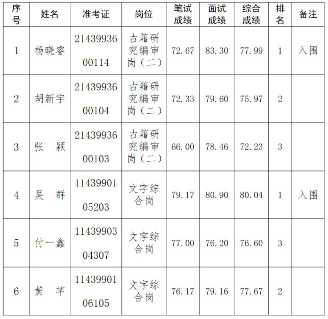 湖南省少数民族古籍整理研究中心2024年公开招聘面试成绩、总成绩及入围体检人员名单的通知