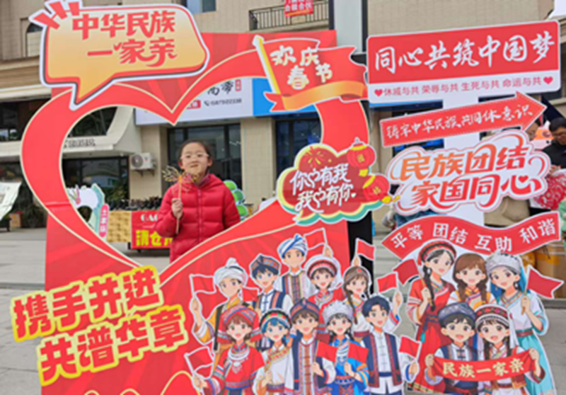 在民族文化交流环节,各族舞者携手献上舞蹈表演,邀请现场观众共学舞步,生动展现“中华民族一家亲”的美好场景;在千人宴上,各族同胞围坐共享,寓意团圆和谐;在非遗手工体验区内,各族群众在剪纸、刺绣等传统技艺中感受中华优秀传统文化的深厚底蕴;在民族团结主题打卡区前,镜头定格下一张张灿烂笑脸,记录各族群众欢度传统佳节的欢乐与喜悦。